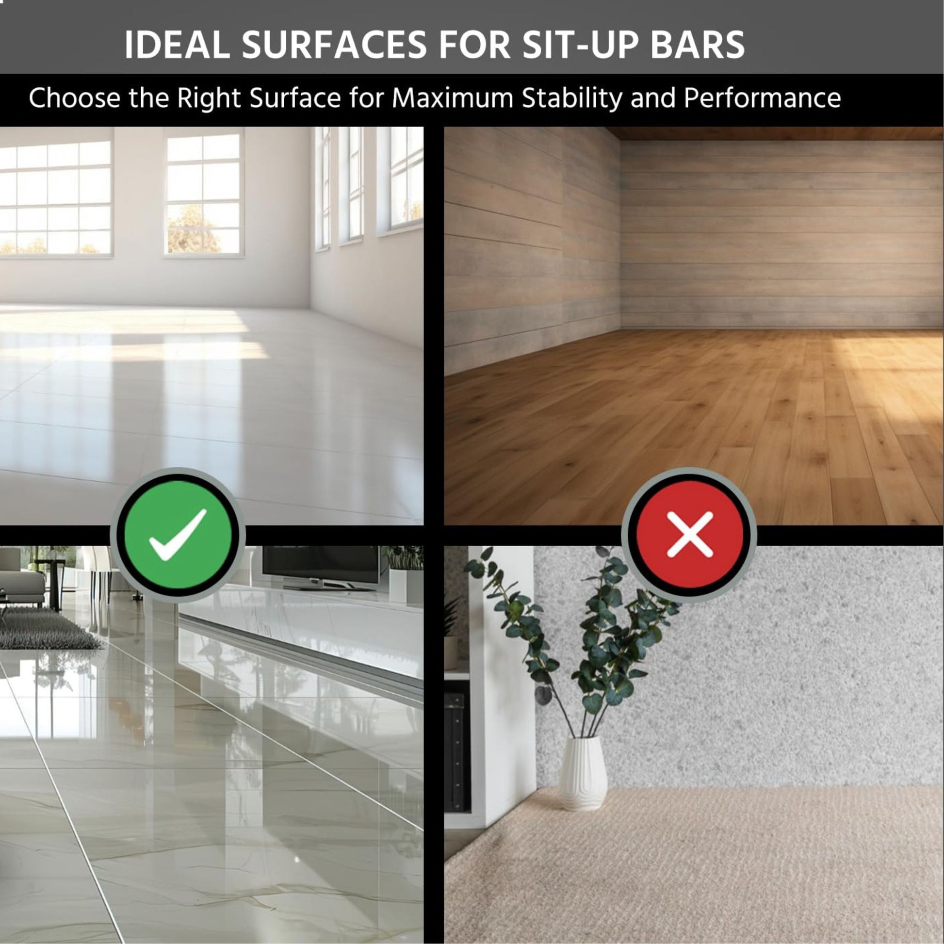 •Sticks firmly to smooth floors for stability.