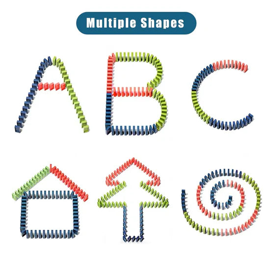 Build your desired domino race track with 40 pieces of colorful plastic blocks. Super fun for your kids to play! Set them up all in a row, and then push one and watch the chain effect of the dominoes tumbling over like a race.